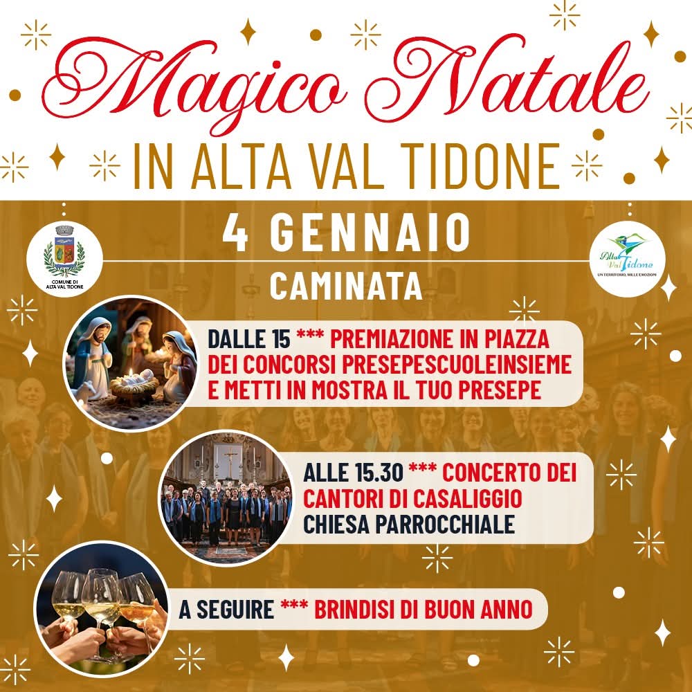 Il 4 gennaio a Caminata, oltre alle premiazioni dei concorsi PresepeScuoleInsieme e Metti in Mostra il tuo Presepe, si terrà la coinvolgente e suggestiva esibizione dei Cantori di Casaliggio, tra canti natalizi e popolari.