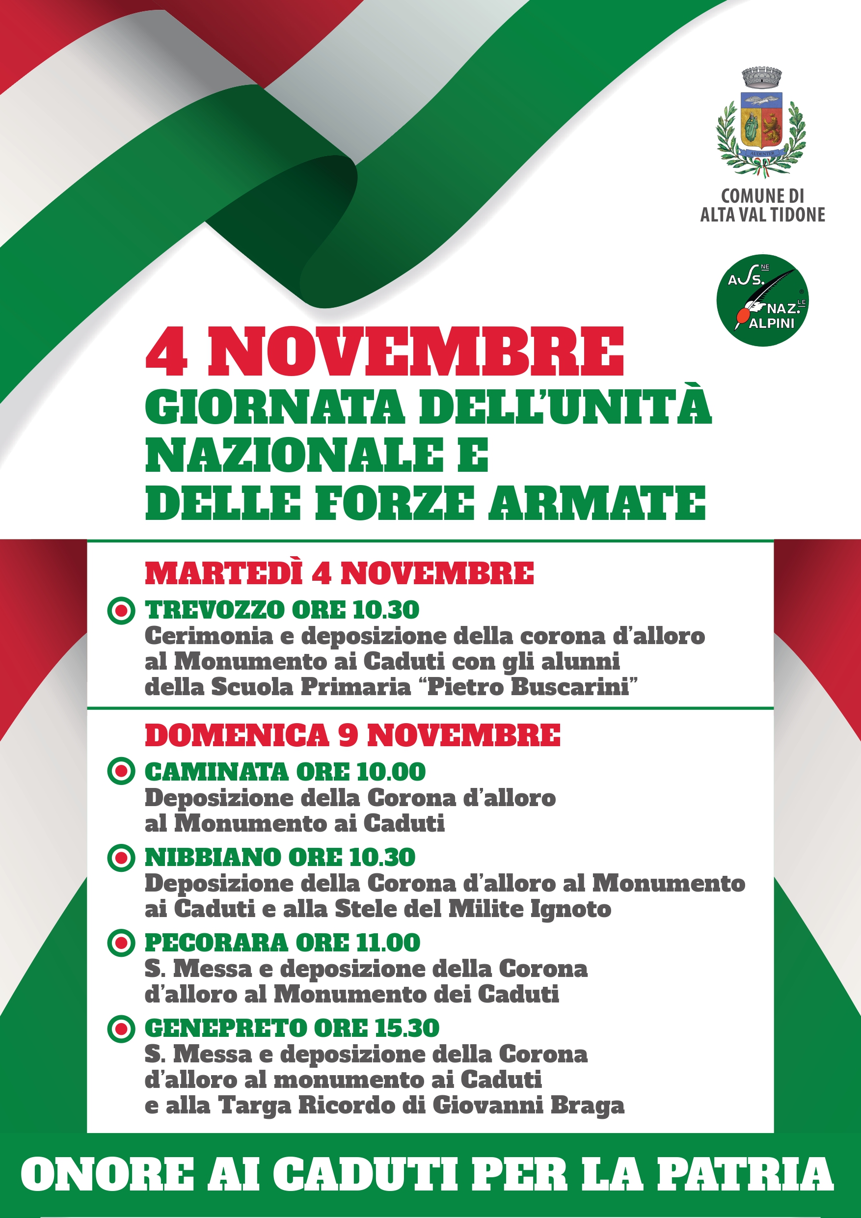 Il Giorno dell'Unità nazionale (indicato non ufficialmente anche come Giornata dell'Unità nazionale e delle Forze armate) è una giornata celebrativa nazionale italiana. Fu istituita per commemorare la vittoria italiana nella prima guerra mondiale con l'entrata in vigore dell'armistizio di Villa Giusti (firmato il 3 novembre 1918), che sancì la resa dell'Impero austro-ungarico all'Italia, evento bellico che permise all'Italia l'annessione delle terre irredente di Trento e Trieste. Per tale motivo, l'intervento italiano nella prima guerra mondiale è stato anche considerato il completamento del processo di unificazione risorgimentale come quarta guerra d'indipendenza italiana.