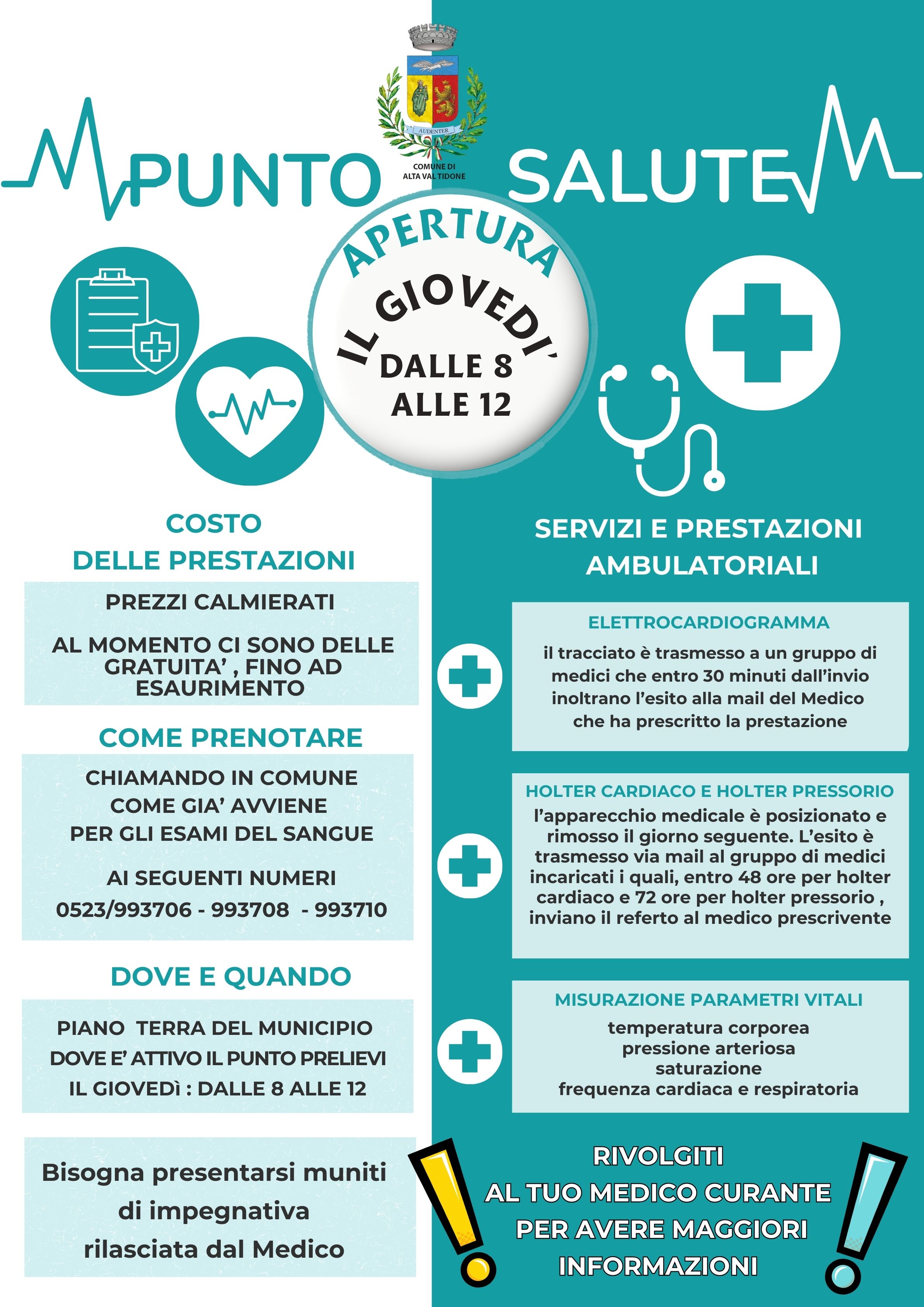 Alta Val Tidone, 13 marzo 2026 – Sarà aperto tutti i giovedì dalle 8.00 alle ore 12.00 nella sede di Nibbiano del Comune di Alta Val Tidone il nuovo Punto Salute, struttura voluta dall’Amministrazione comunale che permette l’erogazione di prestazioni tramite personale sanitario e consente agli utenti di ridurre gli spostamenti e i tempi di attesa. Il servizio è iniziato ieri, giovedì 12 marzo. “E’ la risposta ai bisogni dei cittadini di avere accesso facile e capillare a prestazioni che permettono il monitoraggio di parametri utili per il proprio stato di salute” commentano il sindaco Franco Albertini e l’assessore Giovanni Dotti.